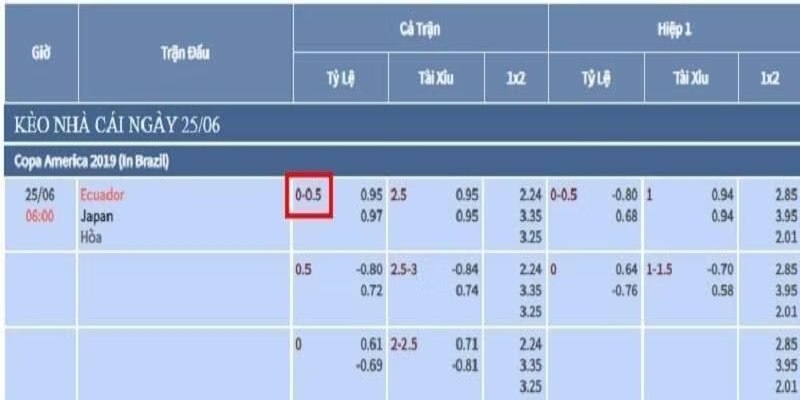 Kèo bóng chấp 0.25 thiên về đội cửa dưới khi hòa
